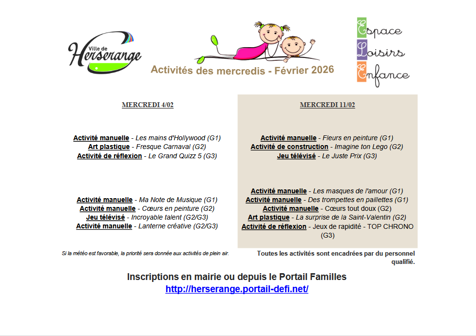 Activités des mercredis récréatifs - février 2026